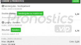 Les pronostics du jour sont disponibles. Pronos en simple et en combiné, à vous de jouer ! …