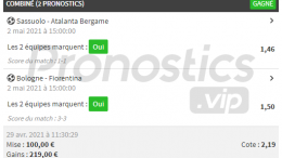 Les pronostics du jour sont disponibles. Pronos en simple et en combiné, à vous de jouer ! …