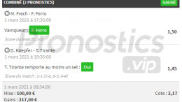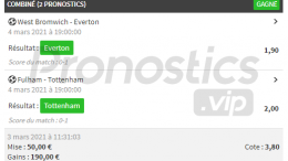 Les pronostics du jour sont disponibles. Pronos en simple et en combiné, à vous de jouer ! …