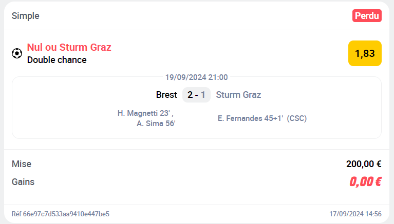 => Cote : 3,18 ❌