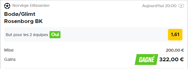 Bodo/Glimt – Rosenborg (⚽ NOR) => BTTS (1,61) ✅